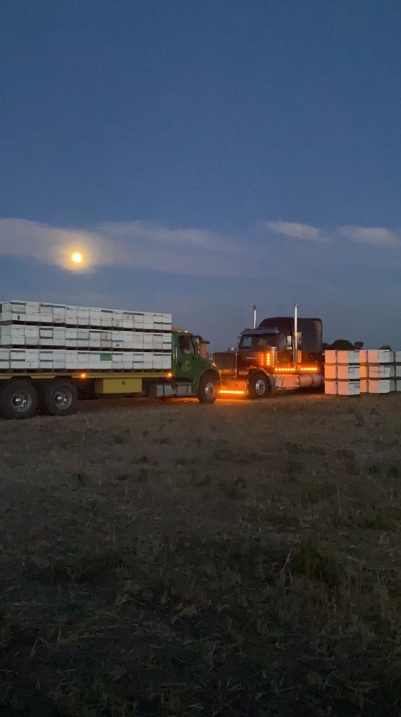We bring our bee colonies to farms near and far to help pollinate: almonds, oranges, avocados, onions, blueberries, cherries, alfalfa, watermelon and much more!